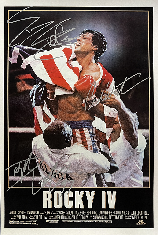 Sylvester Stallone, Carl Weathers, and Dolph Lundgren